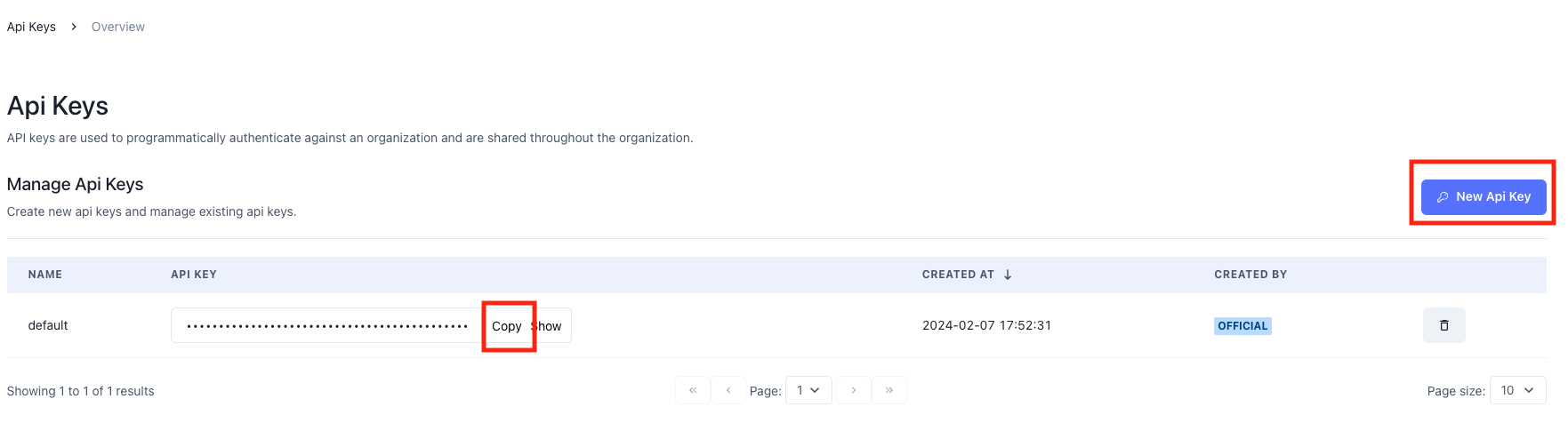 To query deployed model, you need to first have an api key, you can use the default created api or create a new one from the api key management page.Note: All the api keys are shared across the organization.